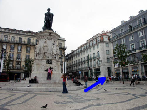fica à direita da estátua para quem está virado de costas para o Chiado |