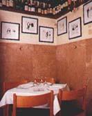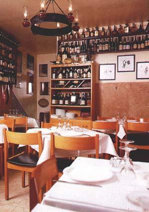 À entrada recebem-nos quatro mesas quadradas dispostas de cada lado com as suas toalhas brancas e as cadeiras de madeira de estofos preto. As garrafas alinhadas ao longo das paredes convivendo com os quadros de José de Lemos dão mais uma nota quente a um ambiente já de si familiar. Mesas cheias. Um senhor almoça sozinho, dois homens discutem questões de trabalho, um casal conversa em voz baixa e um grupo de amigos festejam alegremente Eugénio Fidalgo divide a atenção por todos e ainda arranja tempo para continuar a nossa conversa na mesa do canto.